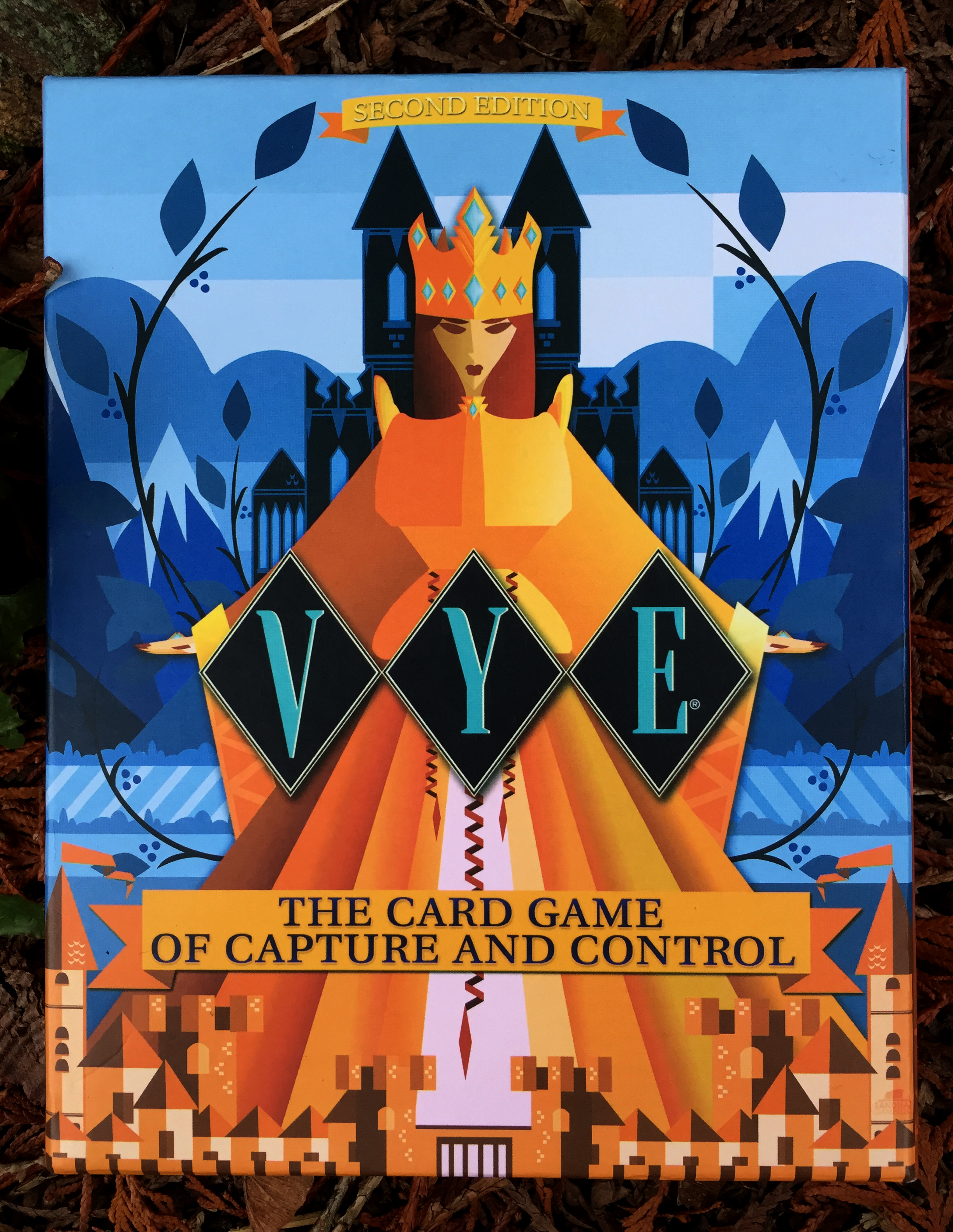 Vye is an area control game that plays quickly across an ever increasing, and oftentimes contentious board, usually taking less than half an hour. It has been favorably compared to Carcassonne, Othello and Go. Playing your cards strategically enables you to capture your opponent’s lands and control the largest kingdom, thereby winning the game.